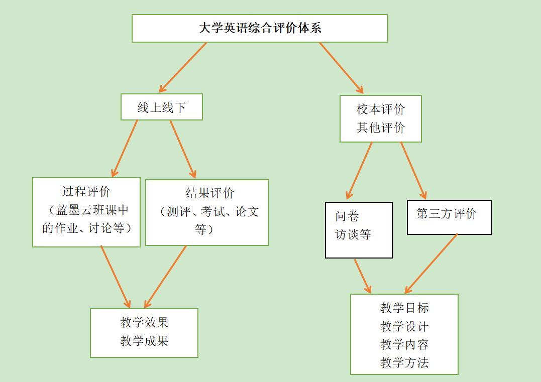 建立线上线下结合、校本评价与其他多样化评价相结合的综合评价体系,对教学目标、教学内容、教学方法和手段等各个环节开展评价,为教学提供反馈信息。