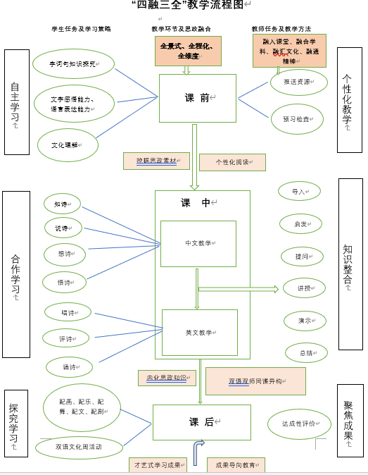 与思政课老师联合备课,充分挖掘课程思政因素,建立“四融三全”双师双语思政授课模式,实现思想政治教育和大学英语课程的深度融合。