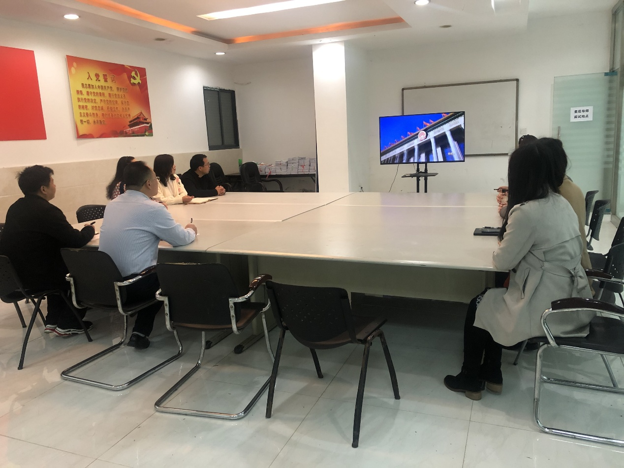 活动由支部书记李曼同志主持,按程序开展了交纳党费、重温入党誓词、诵读党章等工作。在集中学习环节,全体党员集中深入学习了全国两会精神、习近平总书记在党史学习教育动员大会上的重要讲话精神和教育部 2021 年工作要点等内容。