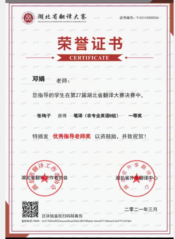 武昌理工学子在第27届湖北省翻译大赛中荣获佳绩