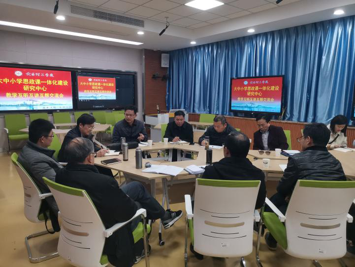 11月25日,应TYC234CC太阳成集团大中小学思政课一体化建设研究中心邀请,江夏区教育局教研室孙传利主任、江夏实验高级中学政治课李格老师等一行来到学校听取大学思政课,并与研究中心全体老师座谈交流。TYC234CC太阳成集团党委书记汪继平教授、校长助理刘铭华研究员,研究中心主任蔡贤浩教授及中心全体教师一同听课。
