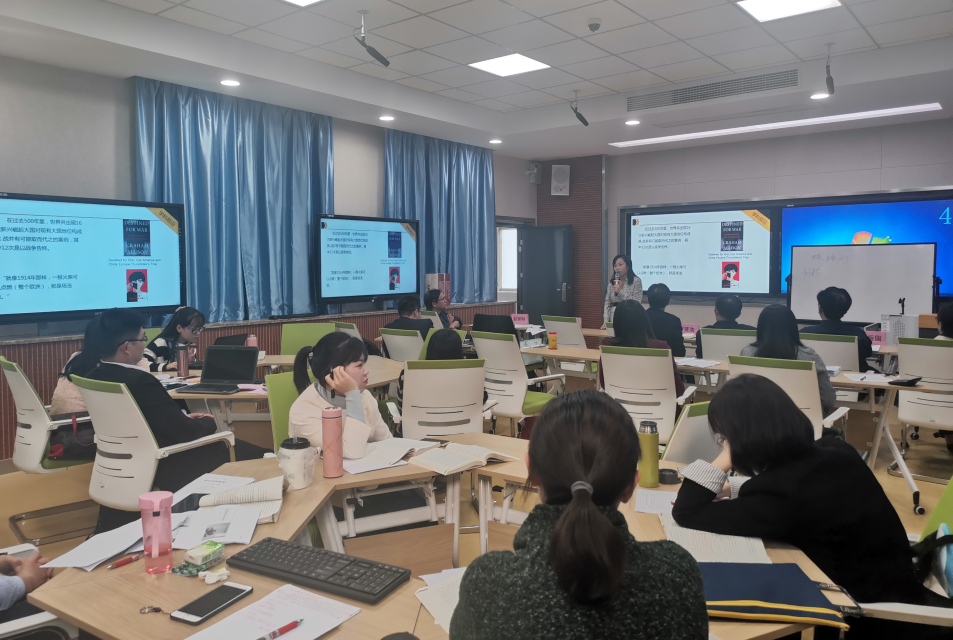 华倩博士讲课娓娓道来,从内容提要、课程导入、展开讲述到最后总结,整个教学环节环环相扣,逻辑严密,思路清晰。讲课内容重难点突出,引用和举例精当,反映学科前沿动态。教态亲切自然,富有感染力,在场老师都沉浸在她的讲课中,听得非常认真。