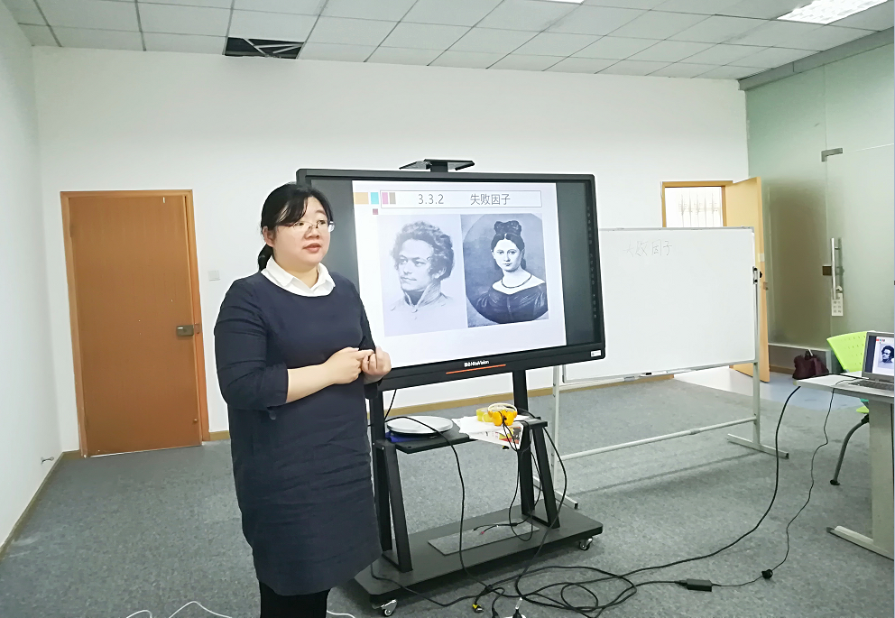 2号选手陈梅老师,她此次的主题是如何正确认识自我,围绕自我意识的相关理论、特点等开始了授课。途中,大量引用名人名言,并提出问题与台下老师进行有效互动,“用哪种动物来形容自己最切贴?”不时的提问非常能调动的课堂的气氛,吸引了大家的注意力。还解析了自我意识的定义与内涵,还在黑板上板书细化讲解“主体我、客观我”的区别,以及对生理自我的认识和身心状况的认知。
