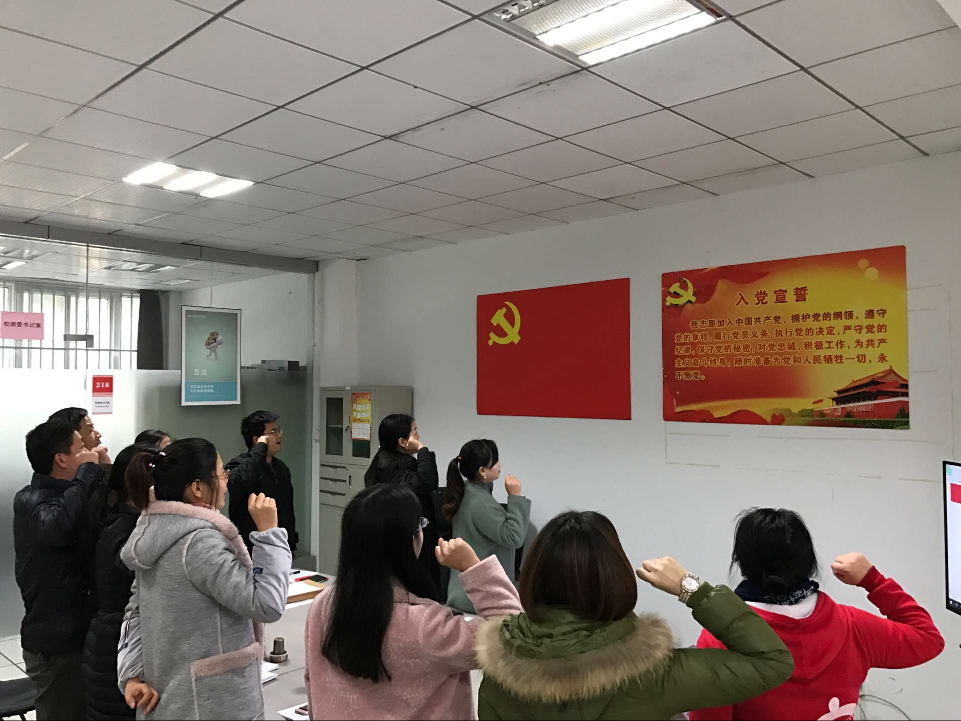 会议开始,曾洁同志组织支部全体成员学习10月24日颁布的《中国共产党章程》总则,随后,重温入党誓词,交纳当月党费。