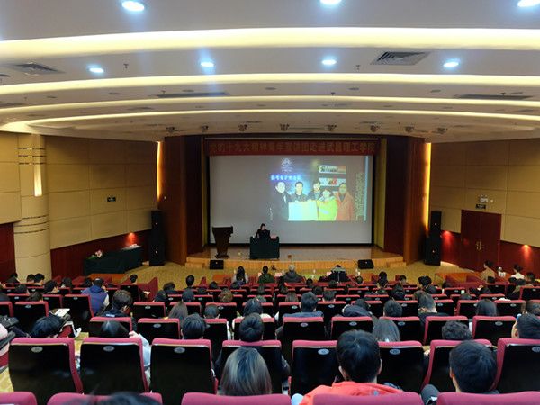报告会初,王艳鸽书记先通过一张张照片描述了她的经历,有各种奖项、各种成就、施工现场及其家人。她说道:“非常荣幸站在这里,我不是大学的教授,不是一名高学历的学霸,只是一名普通的职工,你们的学历比我好,知识也比我丰富。没错,我的位子是很高,是高尚的高,因为我从事的是铁路信号工程施工,每次信号灯的变化都关乎着列车的运行,不容出错。我们手上的烙印是我们独有的印章”。王书记以自身经历告诉大家机会是平等的,必须要时刻准备着,善于抓住机遇,实现自身的价值。接着,王艳鸽书记从“为什么学习十九大”、“学习十九大能解决什么问题”以及“十九大,我们学习什么”三个方面开讲。她把十九大精神结合自己个人经历娓娓道来,将十九大精神贯彻到日常的学习工作中。她讲到党的十九大的主题和6个意义,表明了十九大与我们关系密切。她表示学习十九大可以解决就业、考研、创业、成家、地域、上网等一系列问题,我们要认真学习习近平新时代中国特色社会主义思想。中共中央让我们学习贯彻落实十九大精神,重中之重是学习党的十九大报告,学习十九大的主题:不忘初心,牢记使命,高举中国特色社会主义伟大旗帜,决胜全面建成小康社会,夺取新时代中国特色社会主义伟大胜利,为实现中华民族伟大复兴的中国梦不懈奋斗。作为当代大学生,要厚植共产党人的初心和使命,要增强为民意识。使命担当,把实现中华民族伟大复兴的中国梦扛在肩头,推荐大家看看《习近平的七年知青岁月》。最后她呼吁大家:只要我们肯想肯干,就一定能在以后生活中创造出一片天来!