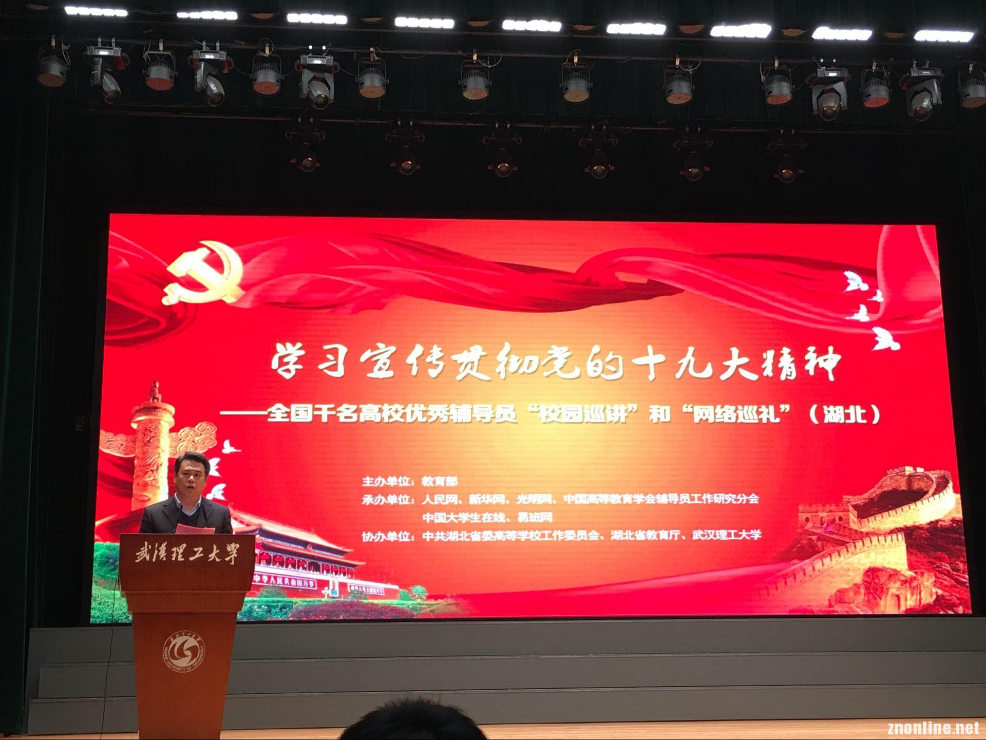 活动由教育部主办,人民网、光明网、新华网、中国高等教育学会辅导员工作研究分会、中国大学生在线、易班网承办,中共湖北省委高等学校工作委员会、湖北省教育厅、武汉理工大学协办。全省有23所高校1200余名师生代表参加此次报告会。
