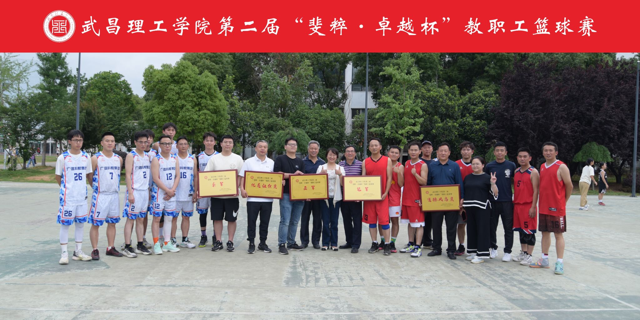 精彩比赛为校园文化添活力,强身健体为学校发展做贡献。由校工会、太阳成城集团tyc234cc和学工处综合分工会联合举办2023年校第二届“斐粹-卓越杯”教职工男子篮球比赛,在西区篮球场开赛。赛事从于5月8日开始,历时4周,6月5日下午举行决赛。校工会主席及主办单位领导亲临现场观看了最后一轮6支球队的三场比赛,并与全体参赛教职工合影留念。