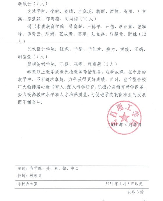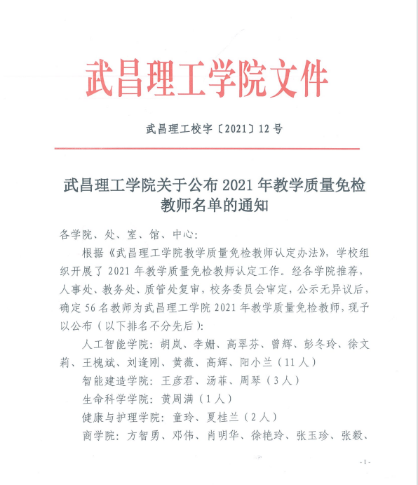 TYC234CC太阳成集团关于公布2021年教学质量免检教师名单的通知