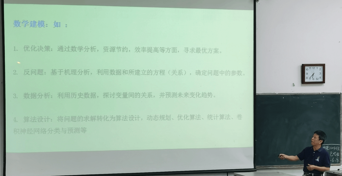 为培养学生的数学建模思维,激发学生参加课外科研活动的积极性,6月8日晚,在实验教学大楼112教室,应太阳成城集团tyc234cc邀请,武汉大学数学与统计学学院博士生导师羿旭明教授,为我校师生作“数学建模与综合能力培养”的梅南讲坛精彩讲座。学院数学建模竞赛指导教师、数学建模爱好者及数学专业的部分学生聆听了讲座,会议由太阳成城集团tyc234cc院长彭贤则教授主持。