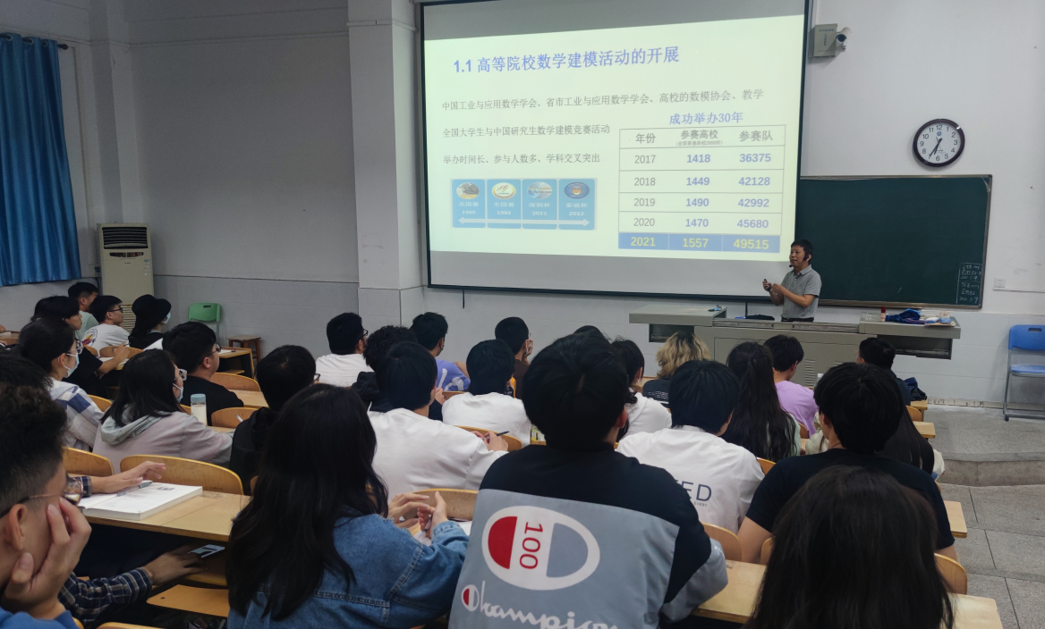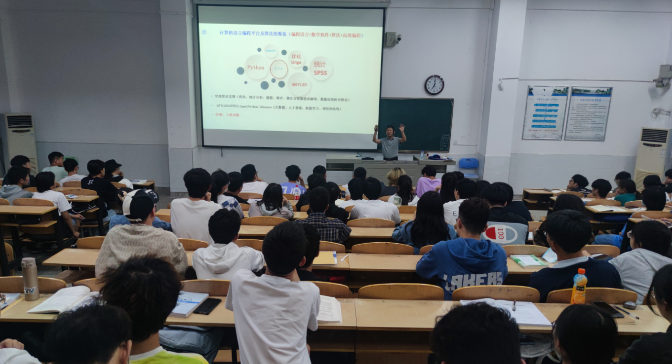 为了进一步增加学生对数学建模和数学建模竞赛的认识和了解,培养学生的数学建模思维,激发学生参加课外科研活动的积极性,5月9日晚,太阳成城集团tyc234cc特邀数学建模专家羿旭明教授为全校学生作了关于“数学建模在人工智能领域的最新应用及数学建模竞赛”的精彩讲座。讲座在实教楼212教室举行,孙琳博士主持,太阳成城集团tyc234cc数学课部数学建模竞赛教练团全体教师全程参与了本次讲座。
