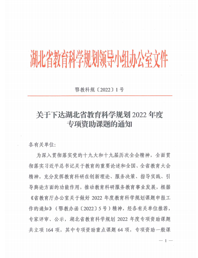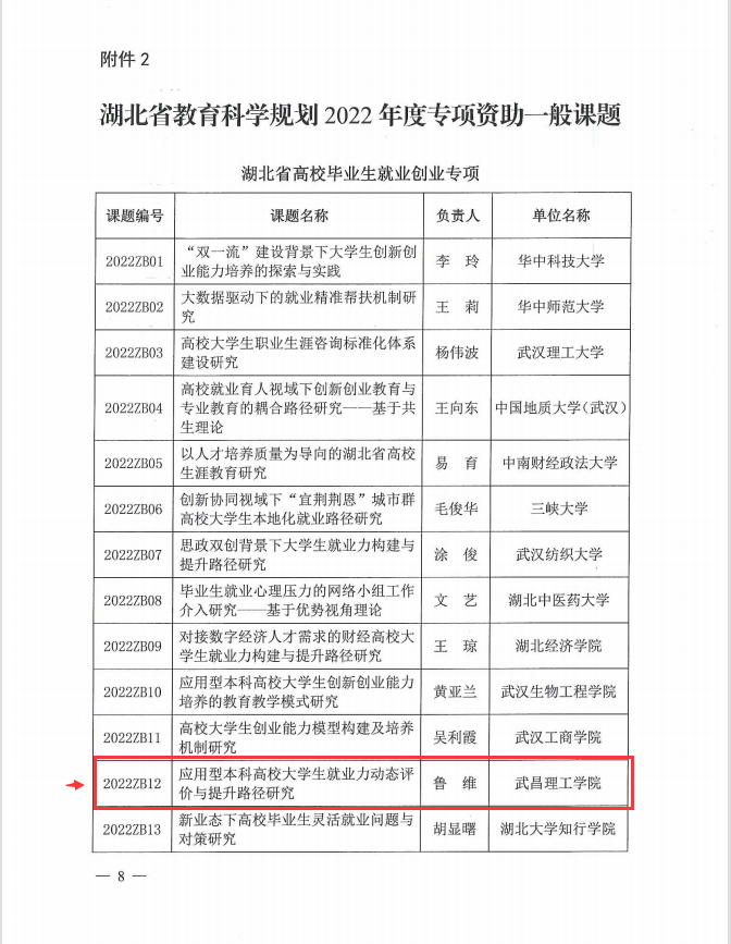 “应用型本科高校大学生就业力动态评价与提升路径研究”项目,获批湖北省教育科学规划2022年度专项资助课题一般项目。