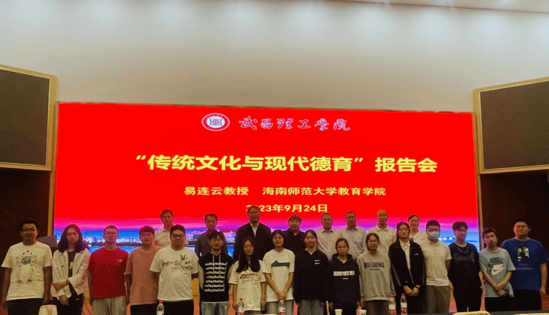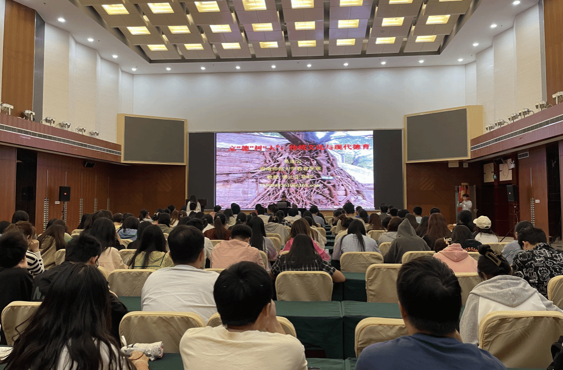 易连云教授从“什么是传统”对传统的内涵进行了深入解读,他把传统比喻成中国的长江,她从远处走来,上下五千年奔流不息,他强调了传统是流动的,是有精气神的,所以传统才能流传下去,传承下去。而文化要从历史文化视角去解读,文化一直统帅着我们中国人的精神,是我们行动的向导,所以才有了传统文化。他强调中华优秀传统文化的显著特点是天人合一,蕴含着和谐、和平和包容等美好的品质,并进一步激发大家思考传统文化对现代德育的影响和重要性。此外在对德育解读上,易教授从“德”字的甲骨文演变和内涵入手,系统阐释了传统文化中所蕴含的深刻的德育思想和育人理念,以及对现代德育教育的启示。他强调中华优秀传统文化是现代德育教育的精神财富和重要资源,学校要在全面落实立德树人的基础上大力传播和弘扬优秀传统文化,找准优秀传统文化和现代德育的契合点,不断创新现代德育的时代价值。
