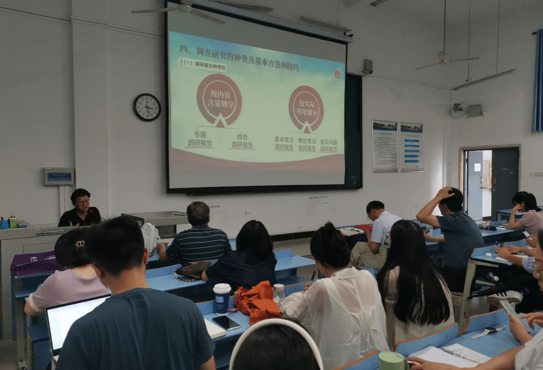 孙军老师围绕“调研报告撰写技巧”的主题,结合省政府工作经验,从搞好调研报告工作的重要意义、要遵循的重要原则、机关调研工作的主要特点、调查研究的种类及基本方法和技巧、如何写好决策咨询研究报告、调研中的形式主义及主要表现、如何克服调研中的形式主义等七个方面进行了详细讲解。孙军老师指出,重视调研是践行党的性质宗旨的有效途径,是坚持马克思主义认识论的重要体现,是坚持实事求是的必然要求,是对中华优秀传统文化的传承弘扬。调查研究要遵循客观性、全面性、系统性、群众性、科学性和实践性等原则,有直接调查法、间接调查法、网络调查法等调查方法。孙军老师结合具体调研报告案例,指出好的调研报告标准是“七有一无”,即文有趣(趣味)、文有理(道理)、文有文(文采)、文有物(事物)、文有识(见识)、文有情(感情)、文有句(妙句)、文无法(定法)。好的调研报告要做到“七清三结合”,即基本情况清、群众期盼清、各方评价清、存在问题清、对策建议清、现成经验清、工作成效清,做到点面结合、感性认识与理性分析结合、定量与定性分析结合。孙军老师最后强调,调查研究要反对形式主义,要真正深入基层一线,掌握实际情况,解决存在问题。
