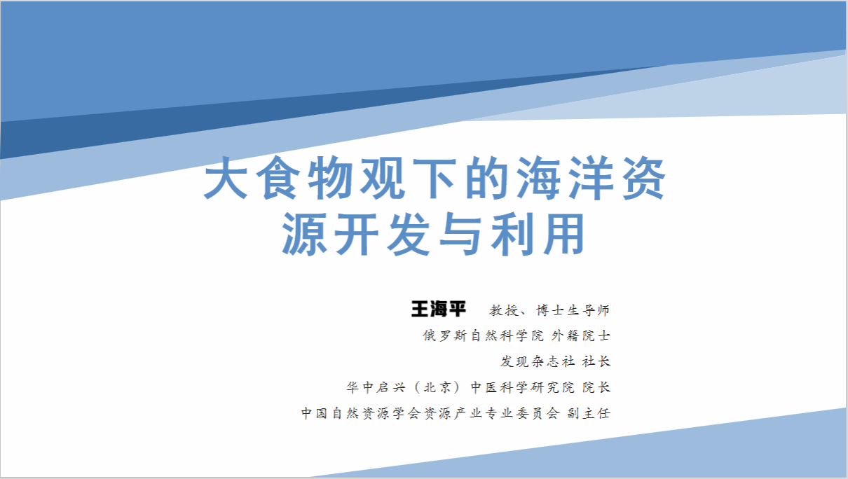 王海平院士介绍了自己与团队在生物医药领域的研究成果,并揭示了中医疗法在维护人体健康方面的重要作用。他以常见的皮肤健康等问题为例,列举了多种对人体健康有利的海洋生物,同时介绍了动物蛋白、植物成分、微生物等相关技术和产品。他指出,务必要重视食品安全。若要保持好的体质,则要保证入口食物须得健康,例如日常生活中要注意油、米、水等食物的正确选择与摄入等。