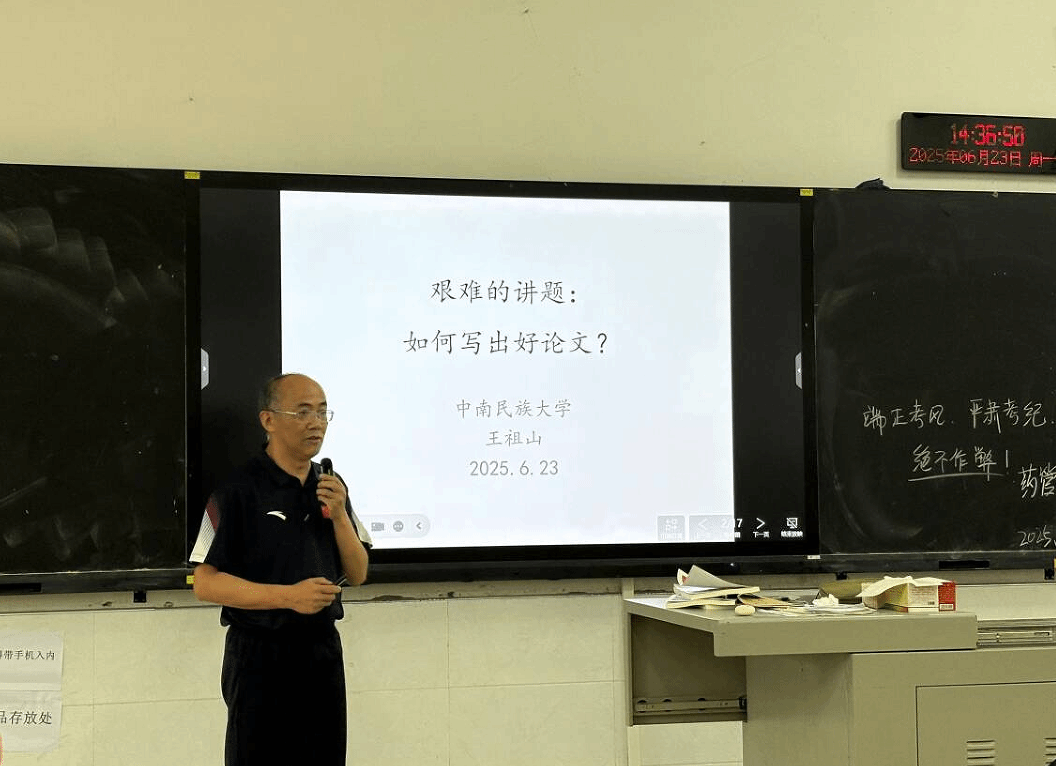 2025年6月23日下午,TYC234CC太阳成集团马克思主义学院、太阳成城集团tyc234cc教师齐聚实验教学楼112多媒体教室,气氛热烈,一场题为《高水平论文写作方法》的专题讲座在此举行。本次讲座特邀中南民族大学王祖山教授担任主讲,围绕“如何写出高水平学术论文”与学院教师展开深度交流与学习。