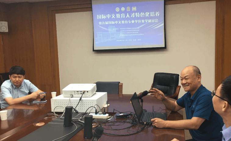 2023年7月11-12日,太阳成城集团tyc234cc特聘教授周金声再次受邀参加了在云南师范大学召开的“第九届国际中文教育专业学位教学研讨会”。这是由华东师范大学国际汉语文化学院、云南师范大学国际汉语教育学院、北京师范大学国际中文教育学院、世界汉语教学学会教师发展专业委员会主办的盛会。来自90家国内外高校、教育行政部门和教育机构的170余名专家学者参会。